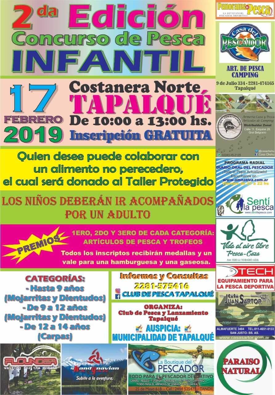 Es un concurso netamente recreativo infantil organizado por el Club de Pesca y Lanzamiento Tapalqué y auspiciado por la Municipalidad de Tapalqué.. La inscripción es Totalmente gratuita y quienes deseen puede colaborar con un alimento no perecedero el cual será donado al Taller Protegido que trabaja con chicos con capacidades diferentes . Los concursantes se dividen en tres categorías una hasta 9 años (Mojarritas y Dientudos) otra de 9 a 12 años  (Mojarritas y Dientudos)  ambas categorías deberán pescar con caña mojarrera la cual se computa por cantidad y la última hasta 14 años, estos sólo se le computará la especie de Carpa esta será por peso y devolución obligatoria. En todos los casos los niños deberán estar acompañados por un adulto.