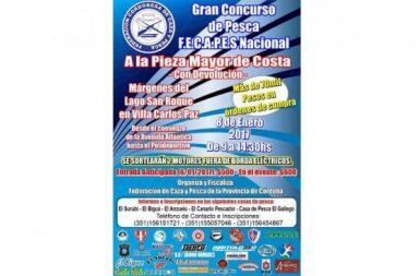 Este domingo se realizará un gran concurso de pesca en la Costanera de Carlos Paz. Mirá. La Federación Cordobesa de Caza y Pesca (Fecapes…