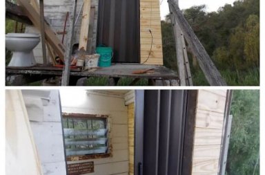 Club de Pescadores sede GuazúEl desarme del muelle ante la creciente, que incluyó necesariamente el del baño ubicado en la última pasarela del muel…