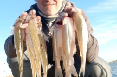 Adela: buena pesca de pejerreyes de buen porte que van de los 28 a 32 cm. Pero no se llega a la cuota. (Pesquero Campesnau +54 9 2241 49-9174)Vitel…